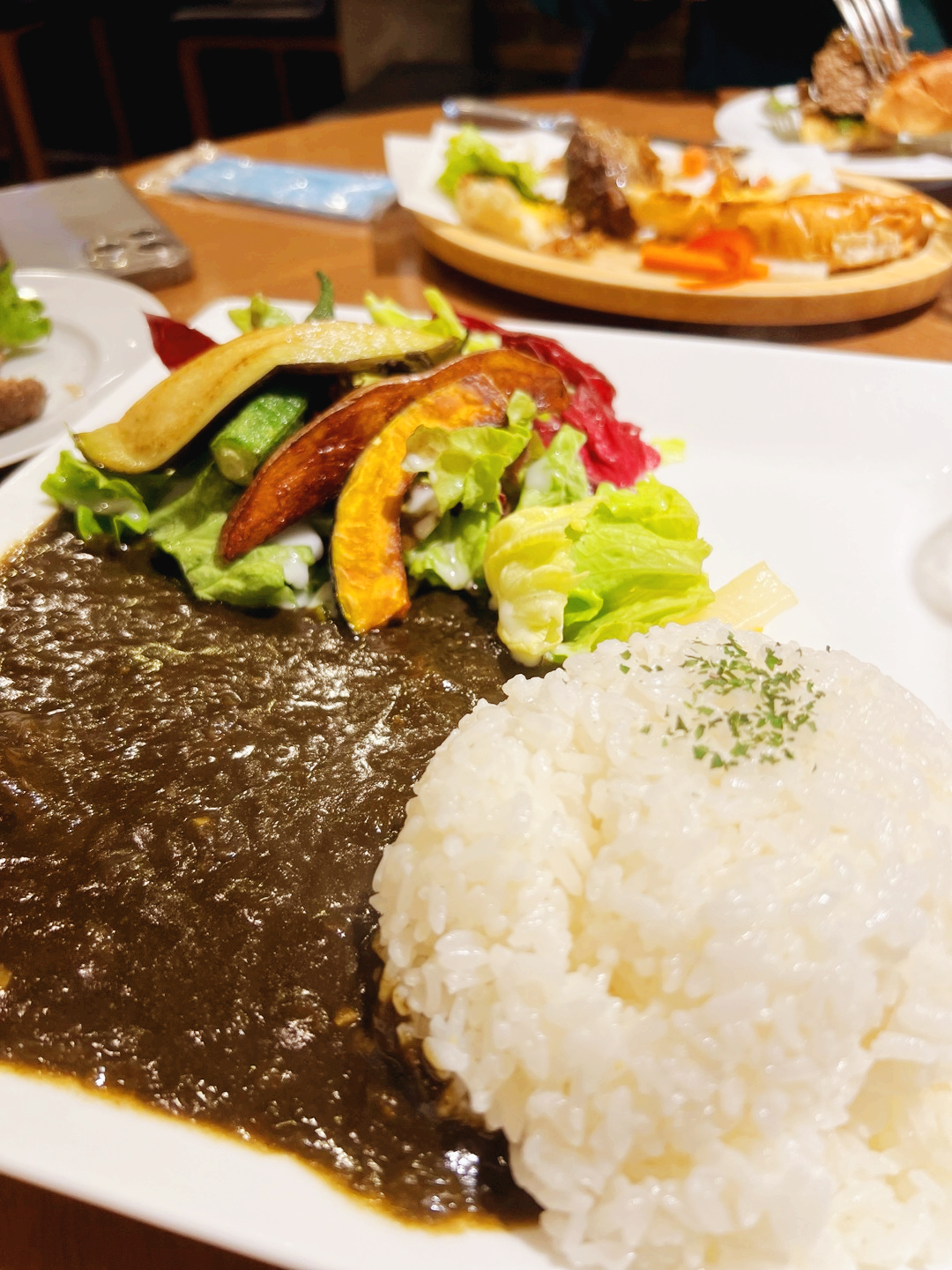 우린 젤 가까운 곳으로 들어가 햄버거와 스프카레, 생선까스를 먹었어요.