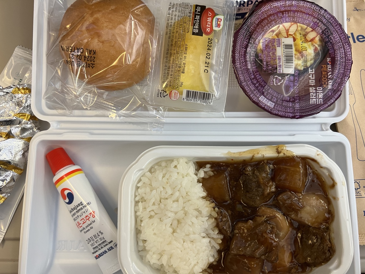 볶은 고추장 팍팍 뿌려 한국맛을 제대로 즐긴 기내식이였어요.