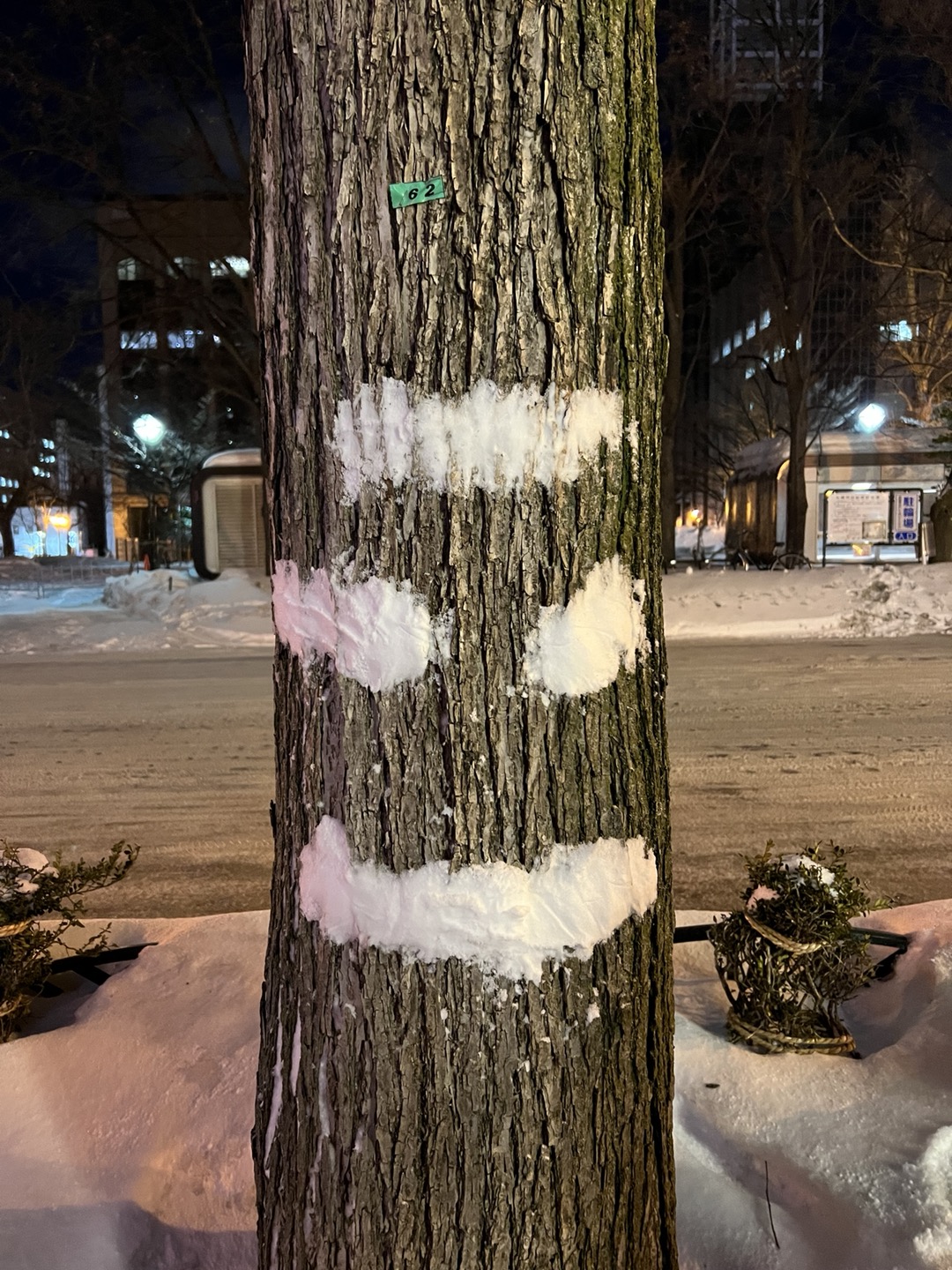 숙소로 돌아오는 길에 나무에 눈으로 흔적을 남기고 ~