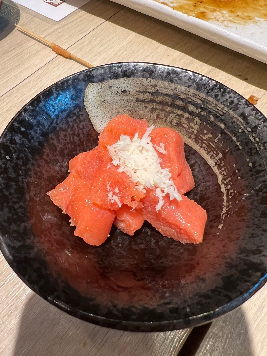 모양이 다른 긴 접시 메뉴만 따로 갖다주셨어요.