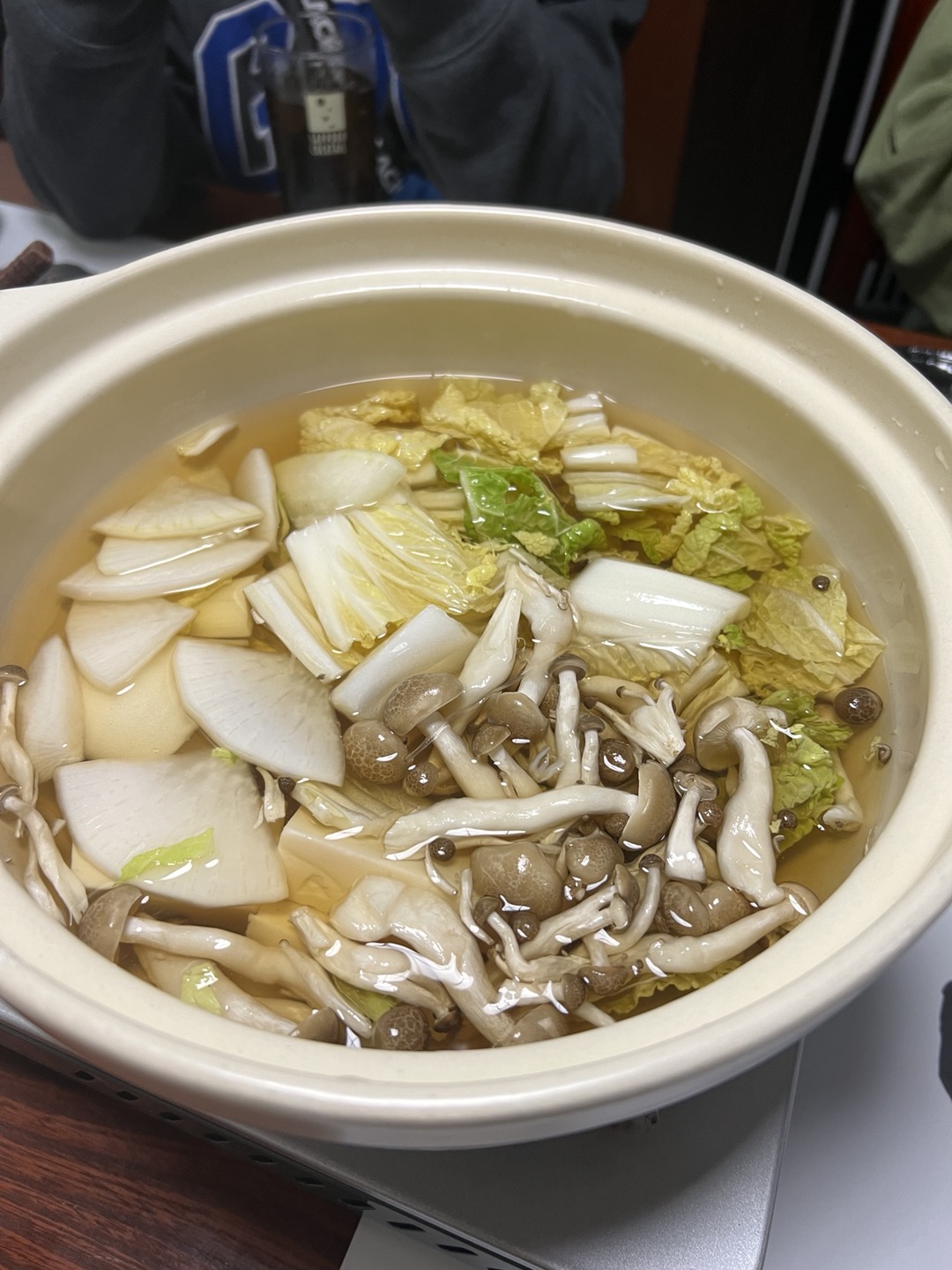 대게를 육수에 담궈 따뜻하게 먹는 방식이라 먼저 샤브샤브 육수가 나와요.